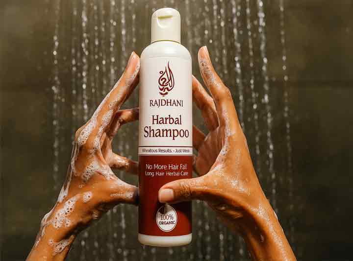 Rajdhani Herbal Radiance Shampoo is more than a hair wash — it’s your daily dose of wellness in a bottle.